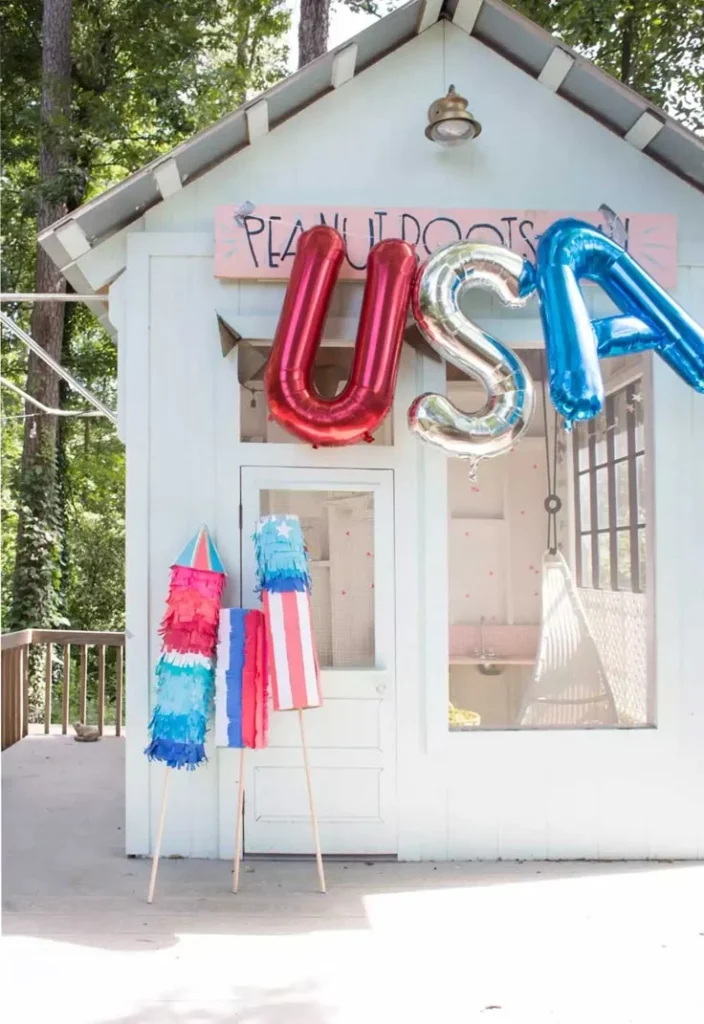 Anchor red, white, and blue balloons with oversized firecracker props made from painted PVC pipes. Cluster along your lawn’s edge for a vibrant, explosive welcome that screams celebration.