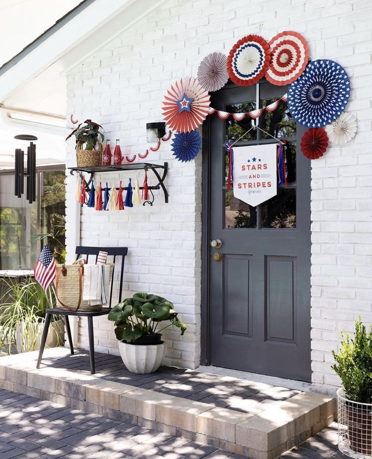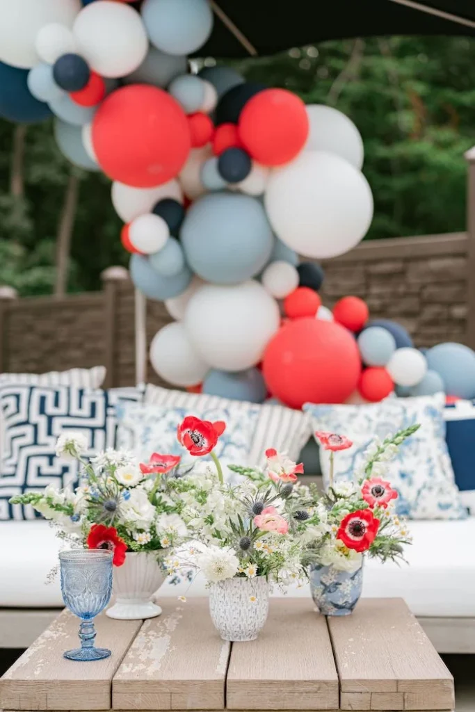 Create a balloon garland in patriotic colors, arched over your walkway or driveway. Add metallic star balloons for a dazzling entrance that sets the 4th of July mood.