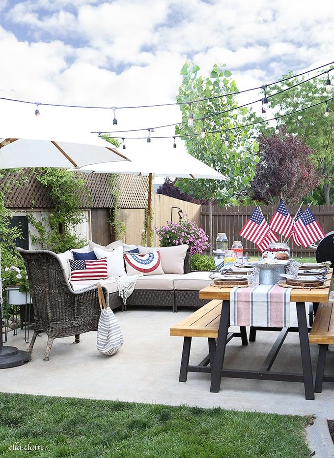 Scatter red, white, and blue throw pillows with star patterns on lawn chairs or benches. Weather-resistant fabrics ensure durability, adding cozy charm to your outdoor seating area.