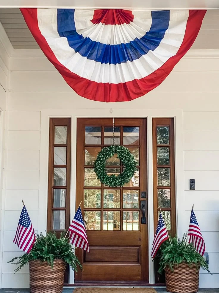 Hang classic bunting flags with stars and stripes across your porch railing or lawn pergola. Their vintage charm creates a parade-ready vibe for holiday gatherings.