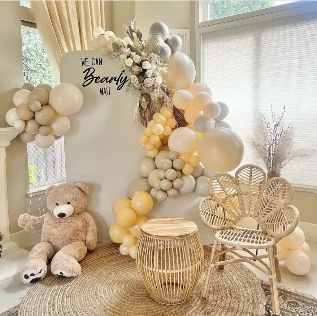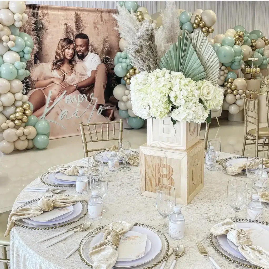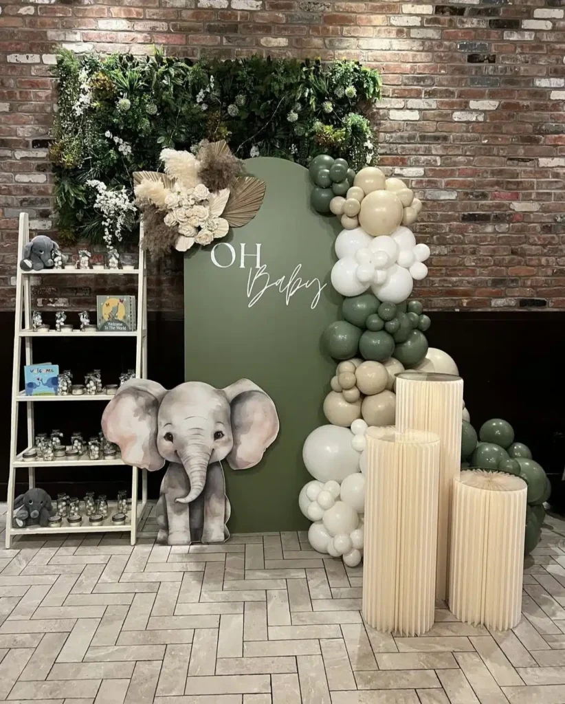 Add a jungle twist with palm leaf garlands and animal figurines like elephants or giraffes. Pair with earthy tones for a wild, boho-chic baby shower vibe.