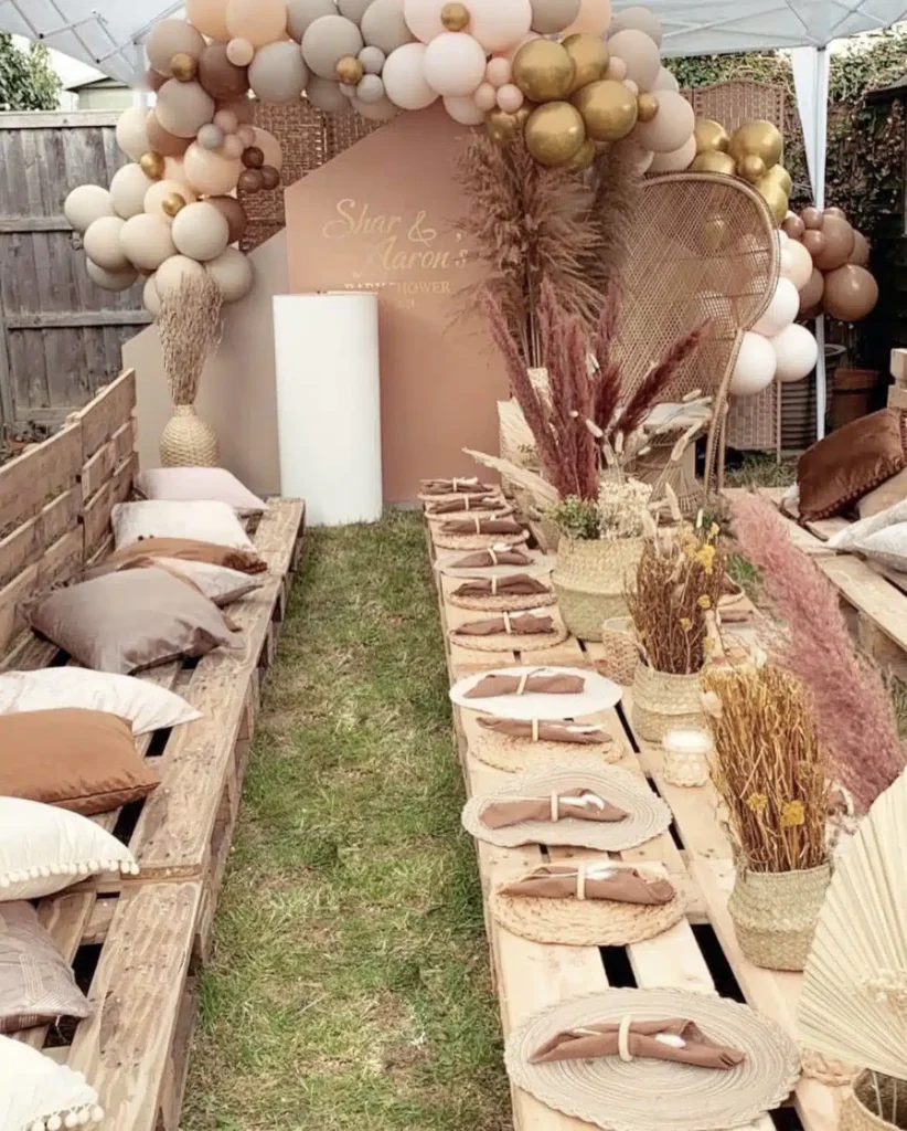 From foliage-draped backdrops to golden-hued accents, these designs draw on the free-spirited essence of boho style, ensuring a celebration as unique as the little one on the way. Let’s weave some boho magic into your baby shower!