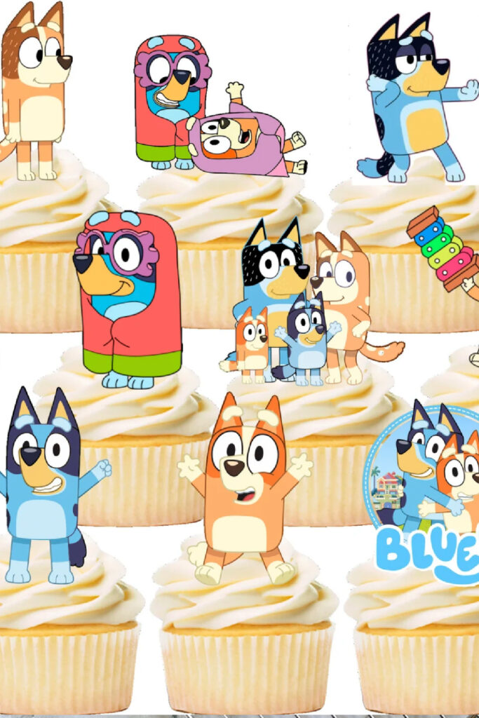 Bake a tiered cake with Bluey, Bingo, and Bandit, iced in vibrant colors. Display with a “Bluey’s Big Day” sign for a fun, family-focused dessert.