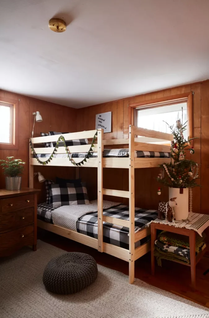 Tuck away year-round bedroom items and replace with holiday-themed accents like plaid throws. This swap keeps the focus on Christmas for a fresh, festive vibe.