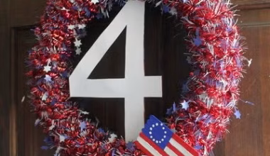 Use a white wooden tray with mason jars, wheat stalks, and a plaid runner. Add a small flag for patriotic charm, blending rustic simplicity with festive flair.