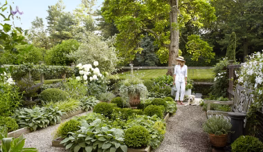 Fill a wicker tray with potted ferns, ivy sprigs, and wooden beads. Add a small star pick for a subtle festive nod, creating a fresh, natural centerpiece.