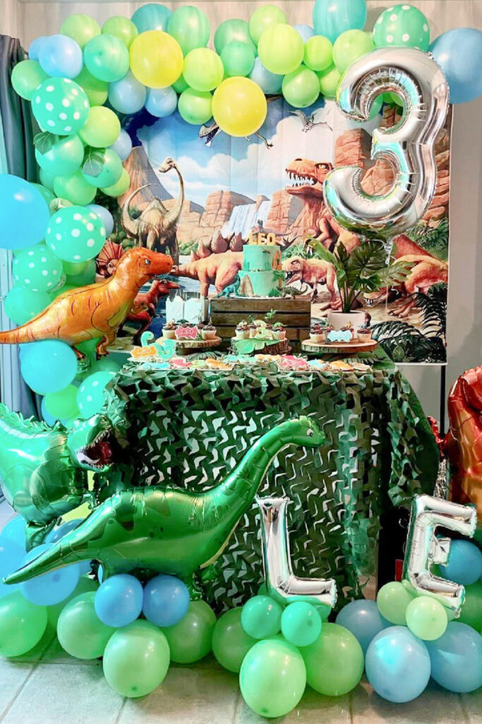 I set up a dessert table with fossil cookies and dino-themed treats, using green tablecloths. It looked prehistoric. It’s a nice idea because it’s cohesive and immersive, creating a Jurassic vibe in a small space without breaking the budget.