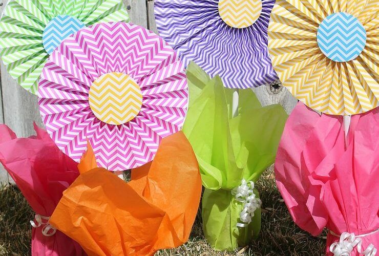 I arranged Dollar Tree faux flowers in vases for vibrant table decor. Mixing colors added energy to the setup. It’s a nice idea because it’s simple and affordable, bringing a fresh, lively look to a birthday party without taking up much space.