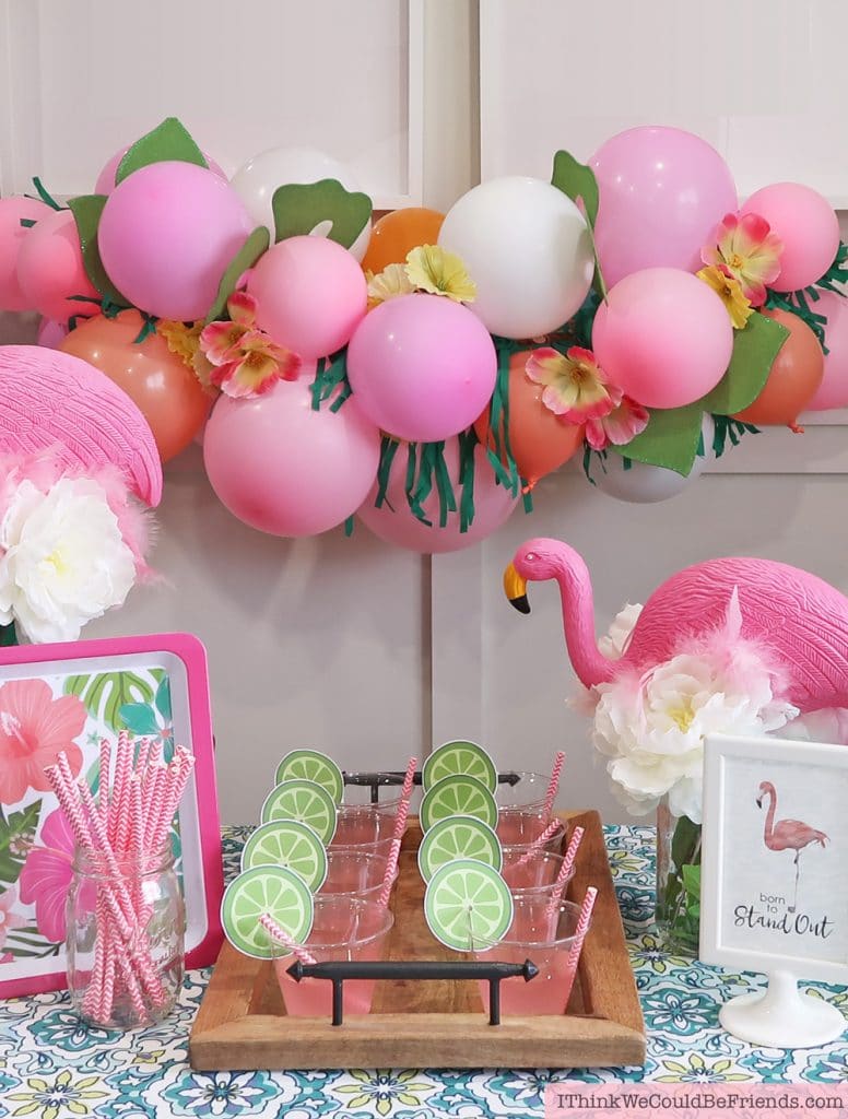 I found tropical-themed cups and leis at Dollar Tree, perfect for a beachy birthday bash. Adding palm leaf decorations created an instant island escape. It’s a nice idea because it’s vibrant and immersive, making a small space feel like a tropical paradise for a fun birthday.