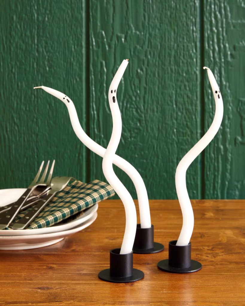 I dripped white wax onto candles to create a wavy, ghostly effect for my friend’s party. These candles cast an eerie glow on the table. It’s a nice idea because they’re simple to DIY and add a haunting ambiance that’s perfect for a Halloween birthday in a cozy space.