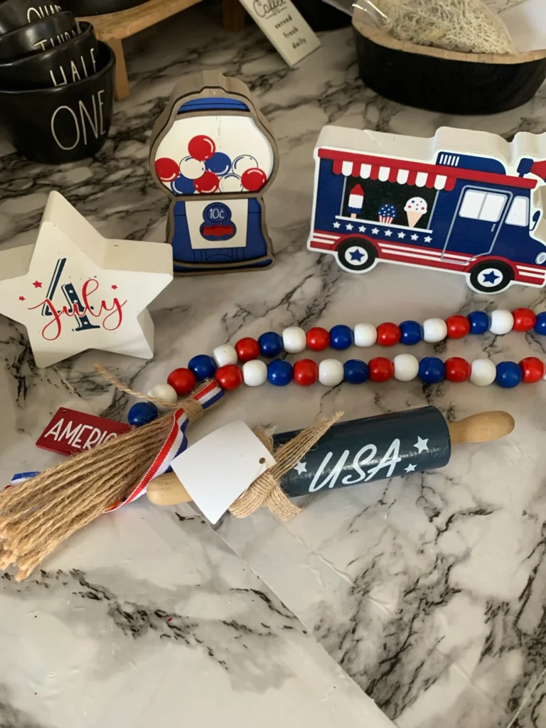Scatter these lightweight foam stars in red, white, and blue around your living room or dining setup. Use them as table scatters or wall accents for a fun, budget-friendly boost of star-spangled energy.