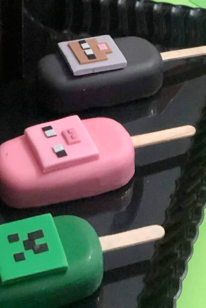 Craft cake pops as Minecraft blocks (coal, redstone, emerald), coated in colorful icing. Arrange in a foam stand with a “Block Party” sign for a tasty focal point.