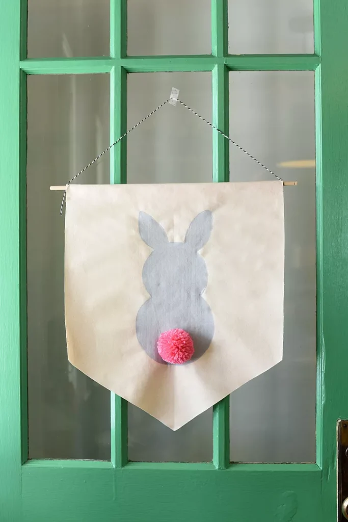 String a banner with felt bunnies and pastel flags across a porch or fence. Add pom-poms for texture, creating a cute, kid-friendly Easter decoration for outdoors.