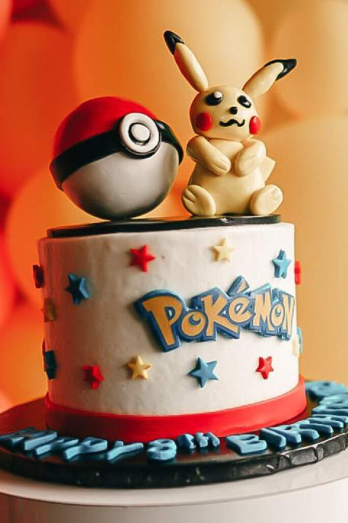 Top the birthday cake with a custom Pokémon topper featuring Pikachu, Ash, or a Poké Ball. Surround with edible stars for a show-stopping cake that’s ready for battle.