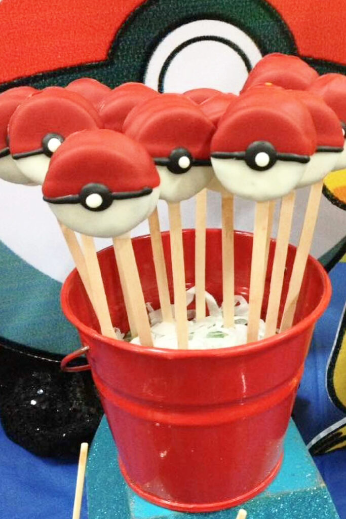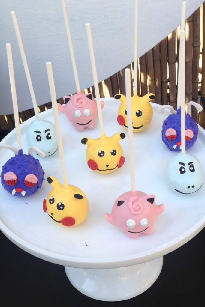 Craft cake pops shaped like Poké Balls or Pokémon faces, coated in red, white, or yellow icing. Arrange in a foam stand with a “Battle for Sweets” sign for a tasty centerpiece.