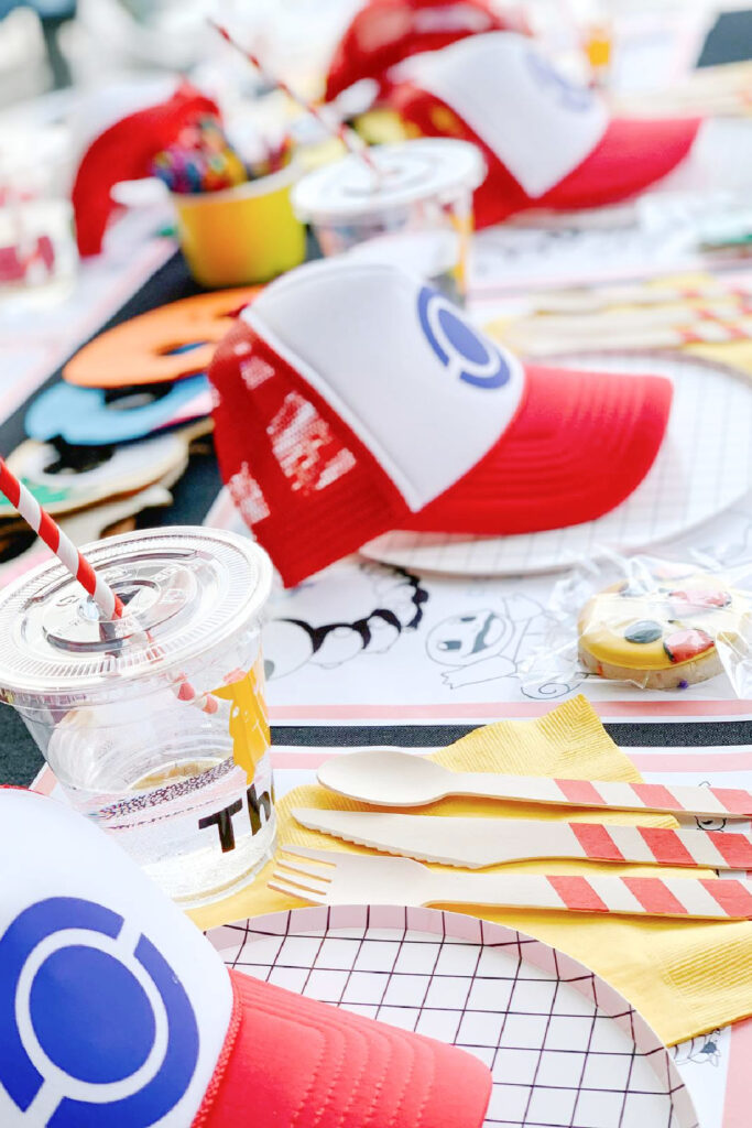 Lay tables with Poké Ball tablecloths, paired with character-themed plates and napkins. Add mini Pokédex centerpieces for a battle-ready dining setup that excites young trainers.