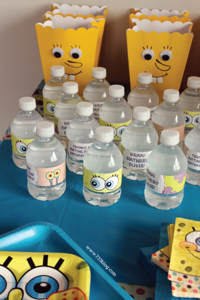 I wrapped water bottles with printable SpongeBob and Patrick labels, adding a fun touch to drinks. They were a hit. It’s a nice idea because they’re cheap and practical, bringing the theme to a small party without extra clutter.